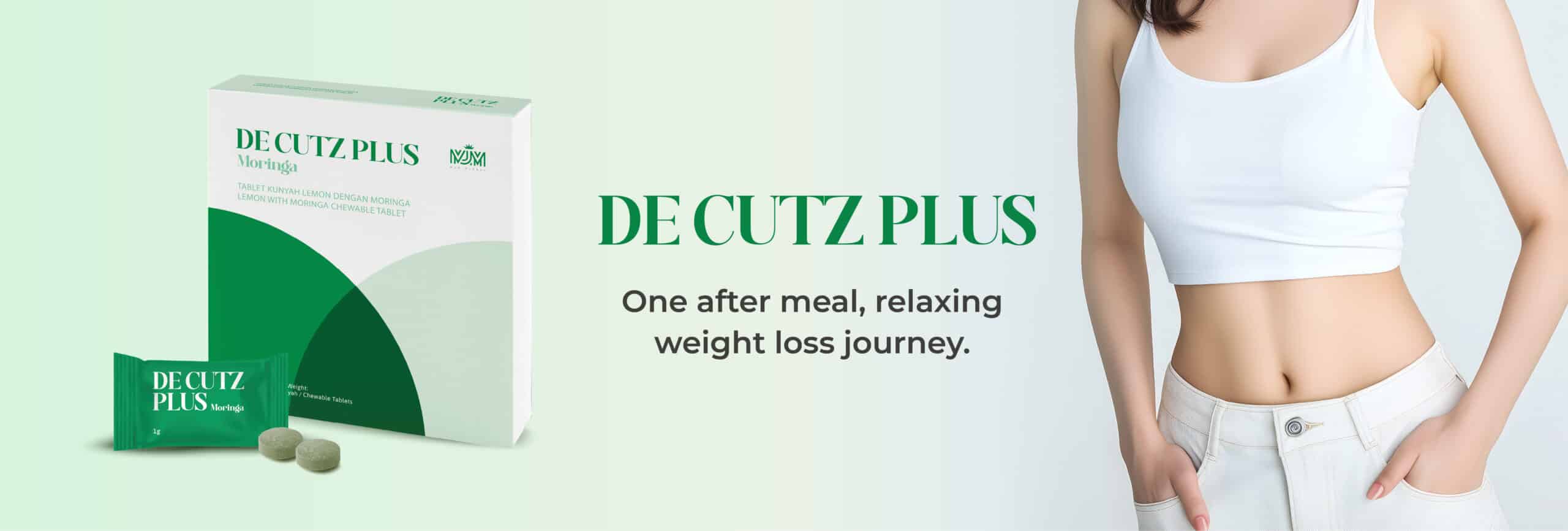 DE CUTZ PLUS combines 5 high-quality ingredients, a good helper in your weight loss journey. Block starch and fat effectively being absorbed into our body. Accumulated fats will be burned, stubborn fats and toxin residues will be excreted in order to achieve healthy weight loss. Taking 1 tablet after meal prevents fats & toxins accumulation due to overeating. Enable you to continue enjoy your delicacies.