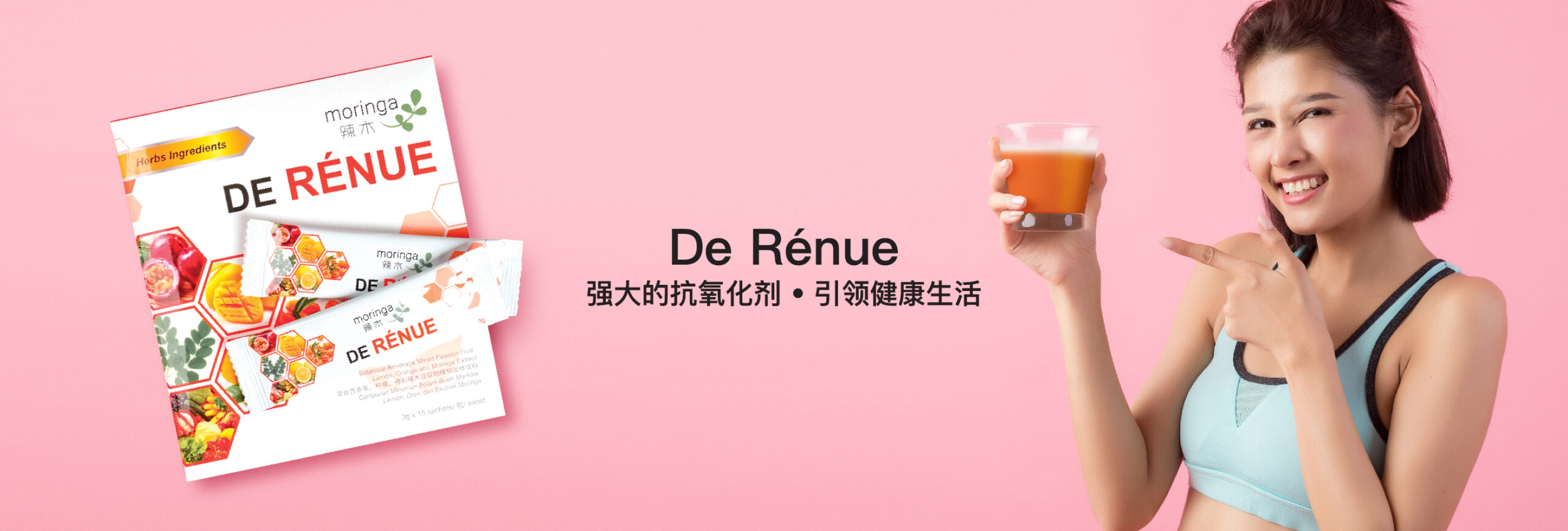 De Renué组方以现代西方发达国家的本草科技相结合,Careless® 利用来自印度南部泰米尔纳德邦的芒果品种,由德国的专利技术生产,并由瑞士质量控制部门推出市面,还有含22种水果和蔬菜的Oxxynea®,奇迹树辣木,生命之果沙棘等珍贵成份精制而成。