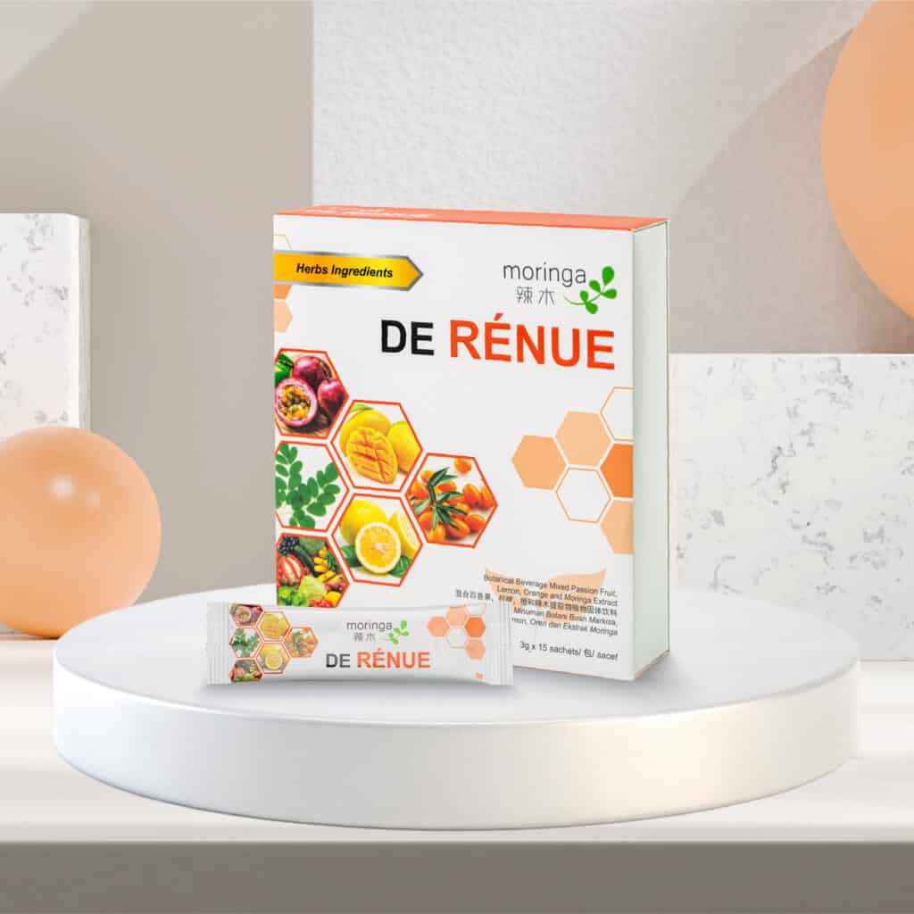 De Renué组方以现代西方发达国家的本草科技相结合,Careless® 利用来自印度南部泰米尔纳德邦的芒果品种,由德国的专利技术生产,并由瑞士质量控制部门推出市面,还有含22种水果和蔬菜的Oxxynea®,奇迹树辣木,生命之果沙棘等珍贵成份精制而成。